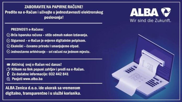 Kako ističu iz ALBA Zenice, svaki e-Račun je ovjeren kvalifikovanim digitalnim potpisom, što garantuje njegovu autentičnost i sigurnost. Računi se šalju elektronskim putem odmah po izdavanju, a korisnici ih mogu pregledati na računaru, telefonu ili tabletu, uz mogućnost odštampavanja po potrebi.