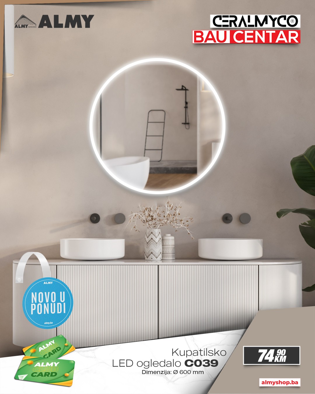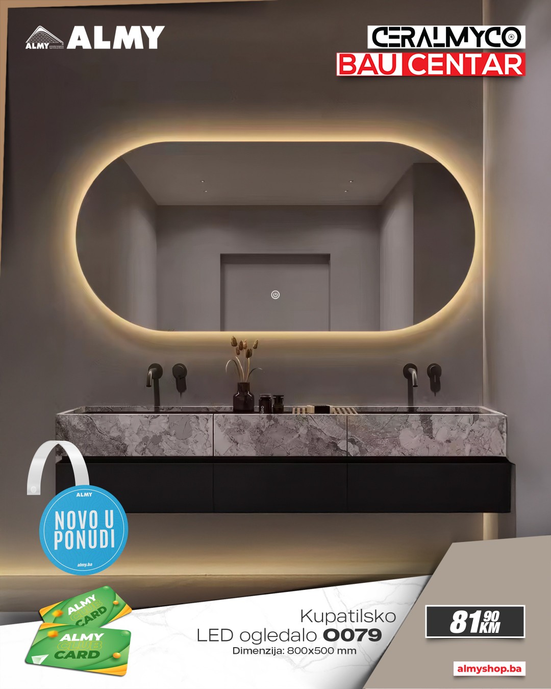 Ljubitelji modernog dizajna i funkcionalnog uređenja kupatila imaju novu priliku za osvježenje prostora! U salonima Ceralmyco i baucentrima ALMY u Zenici i Zavidovićima stigli su novi modeli LED ogledala vrhunskog kvaliteta, dostupni po izuzetno povoljnim cijenama.