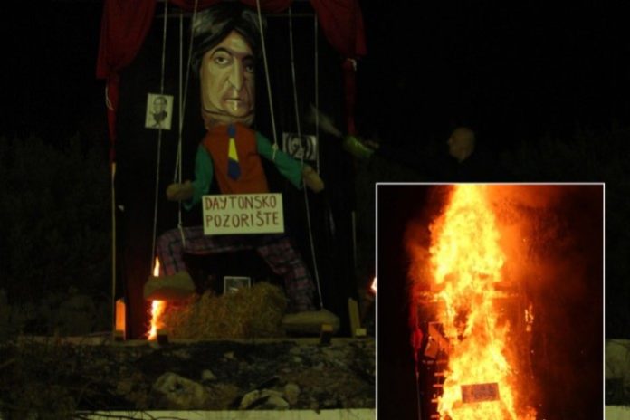 Čast za čitanje optužnice i spaljivanje Marka Krnjevala, odnosno Željka Komšića, pripalo je HKUD “Seljačka sloga” koji su ga spalili u naselju Trebižat kod Čapljine.