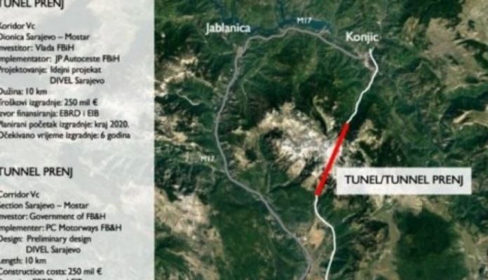 Radi se o najzahtjevnijem objektu na autoputu Koridora Vc čija će izgradnja, kako je procjenjeno, trajati šest godina, a planirano je da počne krajem 2020. godine. Tunel Prenj u dužini deset kilometara nalazi se na dionici autoputa na Koridoru Vc Konjic – Mostar Sjever, a procijenjena vrijednost izgradnje tunela je 250 miliona eura. Investitor je Vlada Federacije BiH, a implementator projekta JP Autoceste FBiH. Izvori finansiranja su Europska banka za obnovu i razvoj (EBRD) i Evropska investicijska banka (EIB).