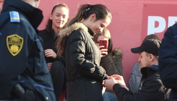 Ovakve scene već smo viđali na našim terenima, a sigurno da Haris i Matea današnju utakmicu neće pamtiti po dobrom kada je u pitanju rezultatski, ali prosidba i ostalo će sigurno duboko ostati u njihovom sjećanju.