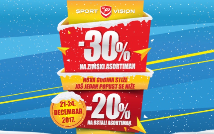 Sport Vision vas ovaj put iznenađuje sa sjajnih 30% popusta na zimski asortiman i 20% popusta na ostali asortiman.