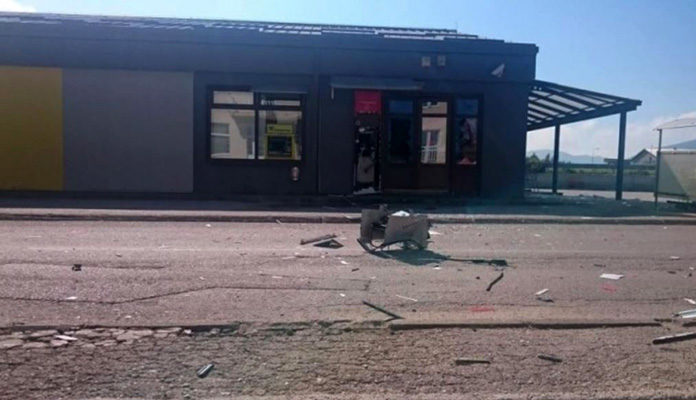 Nepoznati počinitelji su rano jutros eksplozivom raznijeli bankomat u prodajnom centru na ulazu u Kupres i iz njega odnijeli zasad nepoznat iznos novca.