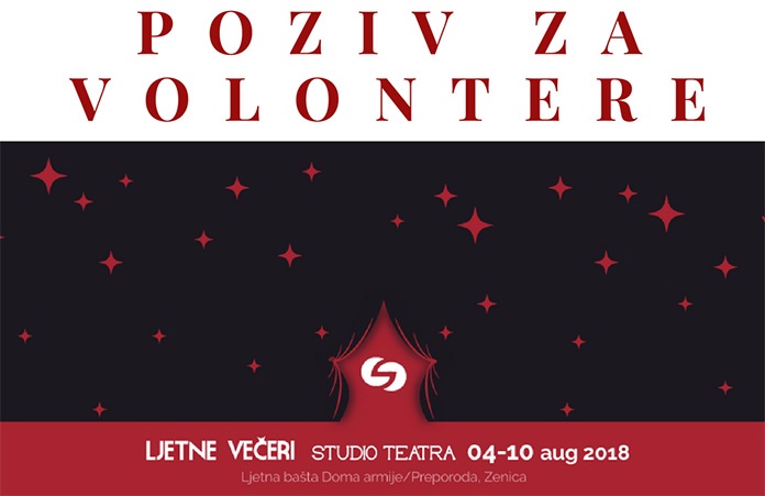 Ako ste ambiciozni, kreativni i komunikativni ovo je odlična prilika da doprinesete realizaciji festivala Ljetne večeri Studio Tetra u Zenici koji će se održati od 04. do 10. avgusta 2018. godine.
