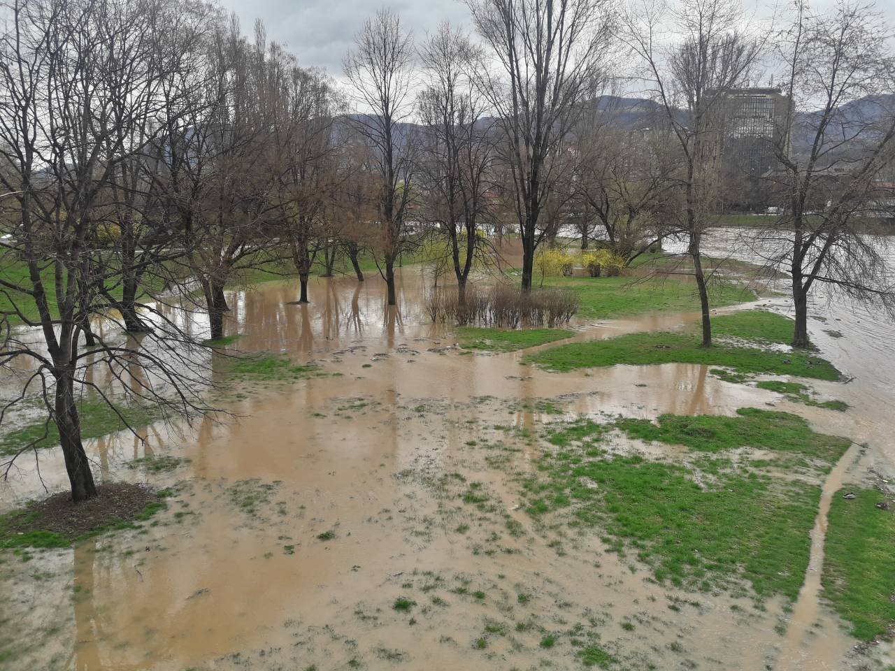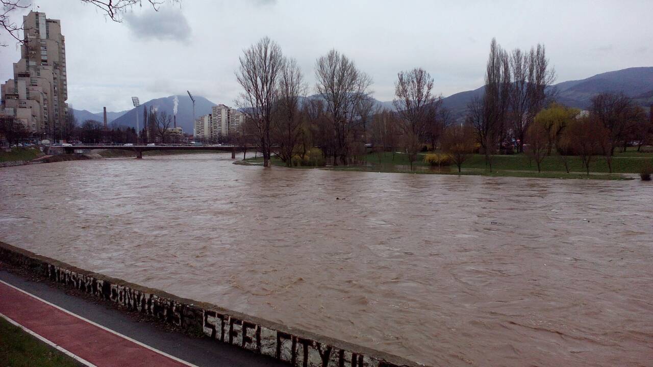 U 8:30 sati na mjernom mjestu u Zenici visina rijeke Bosne iznosila je 360 cm, u 10:30 375 cm, u 12:00 378 cm. Sa tendecijom stagniranja.