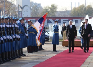 Predsjednik Srbije Aleksandar Vučić priredio je danas, ispred Palate Srbija, svečani doček uz državne i vojne počasti članovima Predsjedništva Bosne i Hercegovine Draganu Čoviću,...