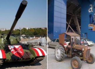 Navijači Dinama postavili traktor kao odgovor na tenk u Beogradu
