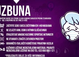 Vlada Kantona Sarajevo, zbog velike zagađenosti zraka, proglasila je epizodu Uzbuna.