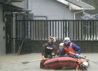 Snažni tajfun Hagibis pogodio je kopno Japana u prefekturi Shizuoka, a područje natopljeno kišom nešto ranije u subotu pogodio je i zemljotres preliminarne jačine...