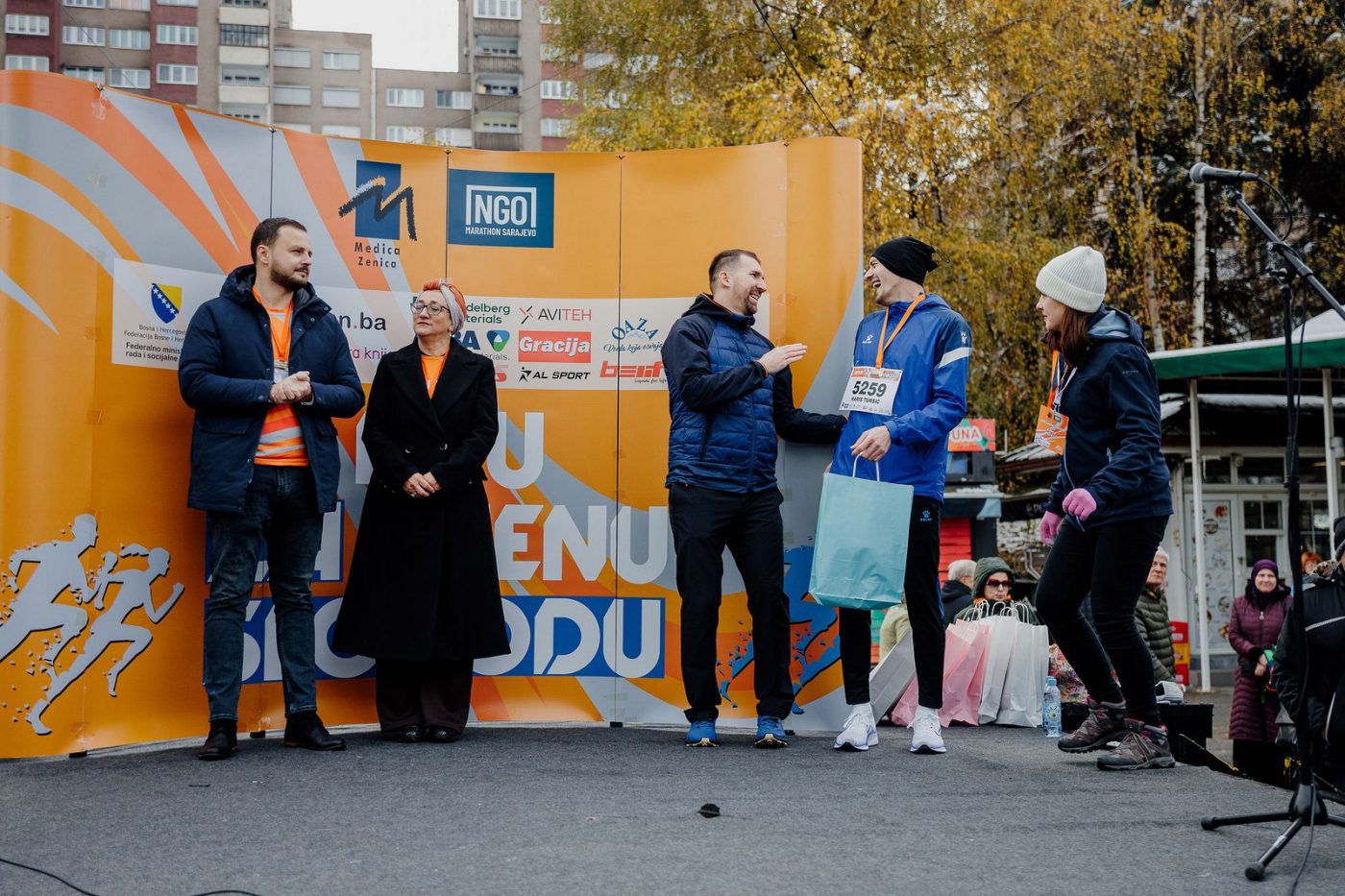 “Prva utrka solidarnosti… ovo je više od utrke. Želimo da pošaljemo jasnu poruku da se nasilje ne smije tolerisati. Pitanje nasilja je pitanje svih nas. Nažalost, slučaj femicida u Mostaru pokazao je da su građani gledali, a niko ništa nije poduzeo. Ponosni smo da imamo 620 učesnika, ne samo iz BiH nego i iz Njemačke, Francuske i drugih zemalja. Sva sredstva od kotizacija uplaćena su na poseban račun za ekonomsko osnaživanje žena koje izlaze iz pet sigurnih kuća u FBiH.”