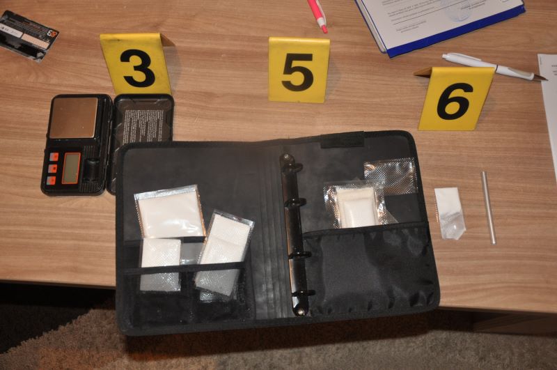 Izvršenim pretresom, u okviru kojeg je korišten i policijski pas za otkrivanje narkotika, pronađeno je sljedeće: