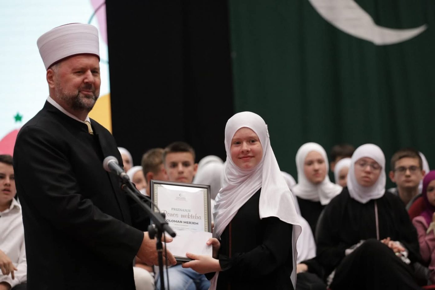 Muftija Dizdarević je s glavnim imamom Kobilicom dodijelio priznanja “Ponos mekteba” sljedećim polaznicima: Merjem Čoloman, Ilma Huseinspahić, Vildana Šišić, Hana Ibrahimagić, Ćamka Mehić, Merjema Heco, Ajša Šahinović, Ismihana Hećo, Haris Arifović, Esma Tosuni, Emela Gadžun, Tarik Šišman, Ajna Žuna, Ensar Pašić, Umihana Kozlić, Almin Hasanović, Merdija Hazić, Nail Delić, Nadira Hodžić, Edina Jusić, Sara Drpić, Anela Valentić, Anida Mahmić, Imad Šišman, Selimanović Lamija, Esma Jašarević, Naida Čamdžić, Danis Žigić, Farah Hasanbašić, Merjem Muračević, Jusuf Durmić, Jakub Fejzić, Čolaković Sara, Amila Vrškić, Jusuf Džerahović, Emir Ahmetspahić, Davud Dizdarević, Džejlana Muslić, Anes Mujkanović, Lamija Selimović, Afan Husić, Anes Brkić, Afan Kovač, Ahmet Hrnjić, Abdulah Bajramović, Ilma Birdahić, Imran Šehić, Ubejd Spahić, Rahela Aščerić, Benjamin Džankić, Ahmed Ahmić, Lamija Lužić, Ajša Muminović, Vedad Nadžaković, Emin Šiljak, Lejla Kahrimanović, Amna Muračević, Anel Berbasić, Lejla Telalović, Imran Šabić, Sanita Karić, Muhamed Čoralić, Ranija Tatarević, Amina Karalić, Sumeja Terzić, Emina Redžić, Merjem Čolaković, Abulah Redžić, Mahir Hodžić, Daris Halilović, Ajna Čičak, Ajna Mujkanović, Rejjan Softić, Ahmed Topić, Abdurrahman Mulalić, Harun Patković, Lemana Kulalić i Amina Hercegovac.