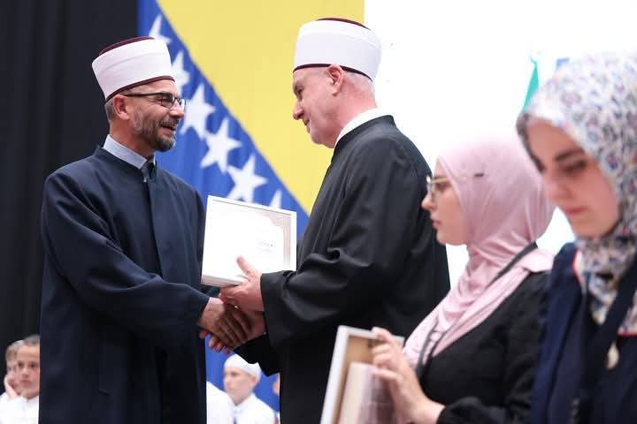 Reisul-ulema je uručio priznanja Hananu Karaliću, pobjedniku takmičenja na nivou Muftijstva zeničkog, odnosno predstavniku Muftijstva na takmičenju na nivou Rijaseta i Ajši Šušnjević, pobjednici takmičenja na nivou Rijaseta.