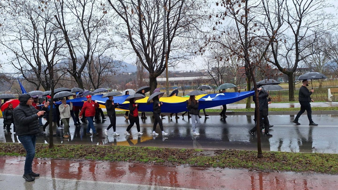Na čelu kolone ponosno je koračao proslavljeni atletičar Mesud Pezer, nosilac brojnih titula, u društvu istaknutih sportista koji su nosili zastavu Bosne i Hercegovine.
